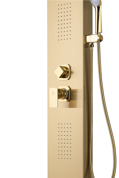 پنل دوش مدل Glossy شرکت آرامان با رنگهای کروم مات، کروم براق، طلایی مات دارای بدنه استیل ضد زنگ 304 ss (بهترین و مقاوم ترین آلیاژ موجود) و 3 سال ضمانت بدنه است. دارای 5 حالت پرتاب (پاشش) کاربردی به شکل مجزا و لوازم درجه یک می باشد. این پنل دوش جز بهترین و با کیفیت ترین پنل های موجود در بازار جهانی است. مقاومت، زیبایی، کیفیت لوازم و قیمت مناسب مشخصه های اصلی پنل های دوش شرکت آرامان است.
