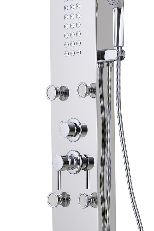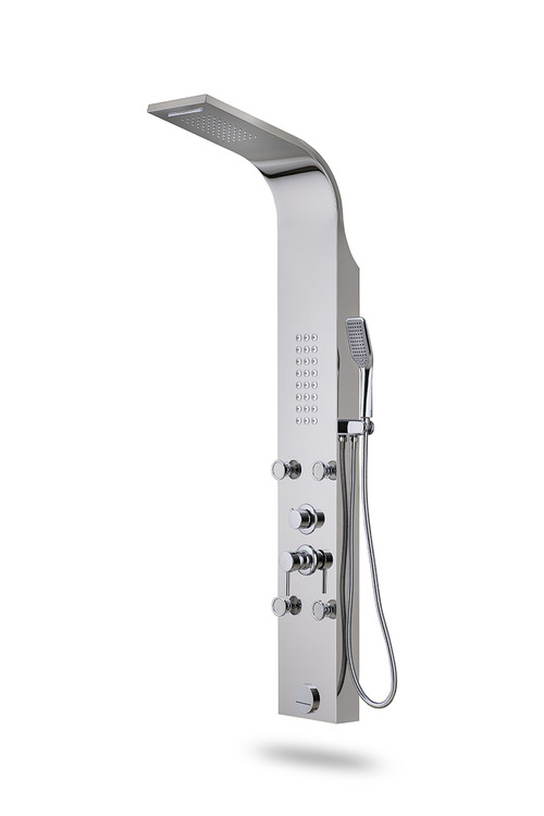پنل دوش مدل H شرکت آرامان با رنگ براق، دارای بدنه استیل ضد زنگ 304 ss (بهترین و مقاوم ترین آلیاژ موجود) و 3 سال ضمانت بدنه است. دارای 5 حالت پرتاب (پاشش) کاربردی به شکل مجزا و لوازم درجه یک می باشد. این پنل دوش جز بهترین و با کیفیت ترین پنل های موجود در بازار جهانی است. مقاومت، زیبایی، کیفیت لوازم و قیمت مناسب مشخصه های اصلی پنل های دوش شرکت آرامان است.